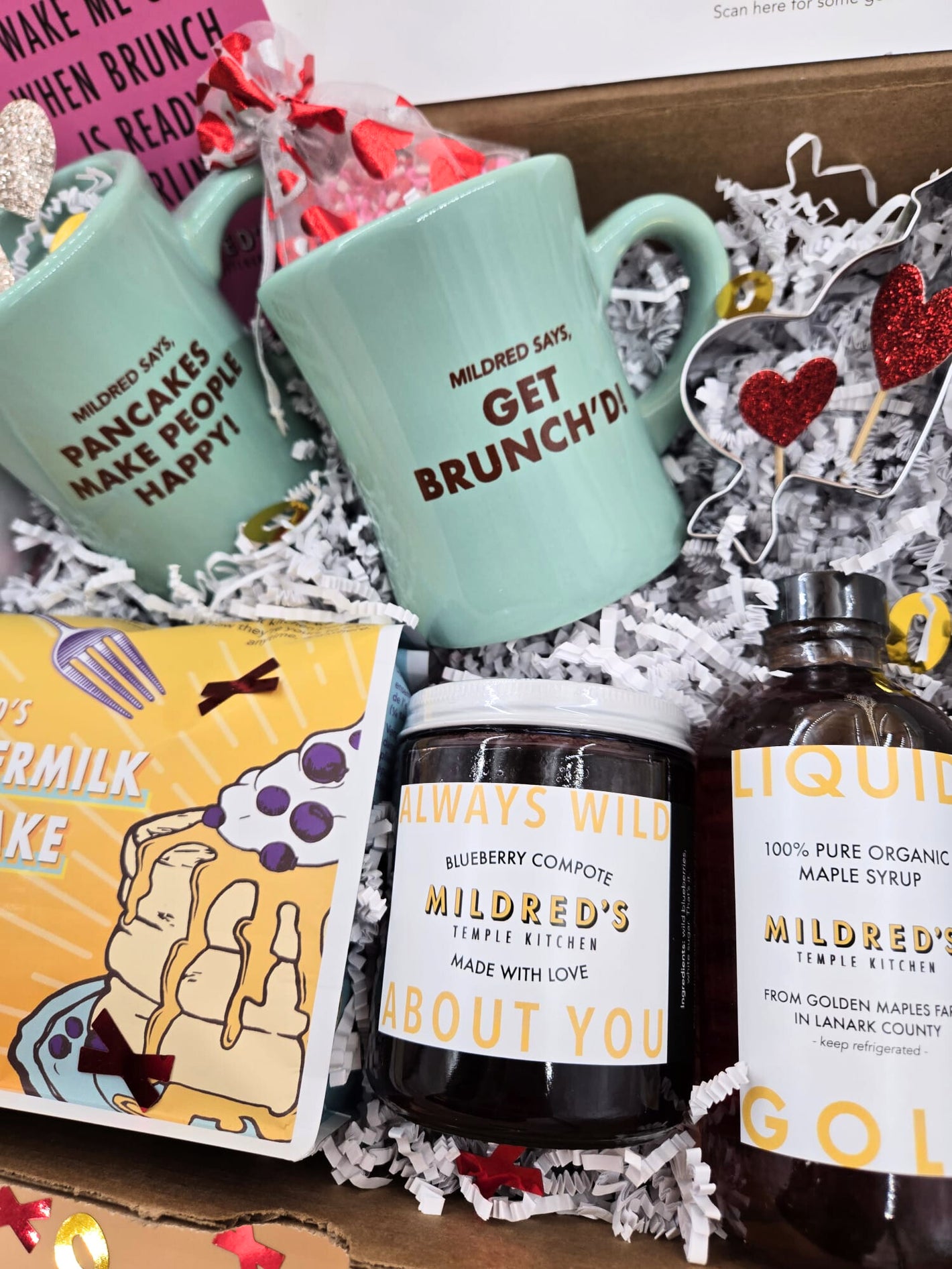 Take your gifts up a notch and offer the full pancake experience! Our Pancake Essential Kit makes a perfect gift - complete with our pancake mix, Lanark County maple syrup and Mildred's signature blueberry compote. -